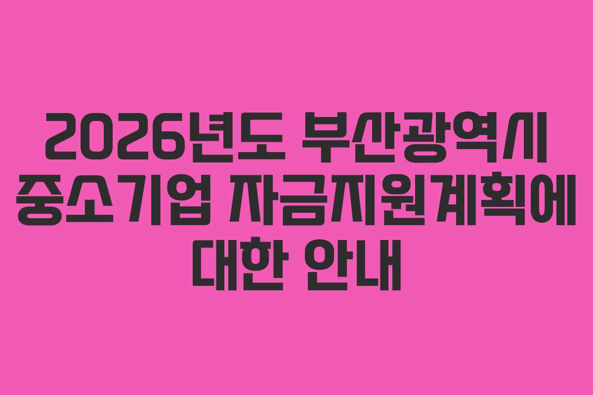| 중소기업 육성자금 | 500억원 | 부산시 내 사업장 중소기업 | 18억원 (명문향토 20억원, 지식산업센터 5억원) | 변동금리 연 4.80% | 2026년 짝수월 초일부터 자금 소진 시까지 |