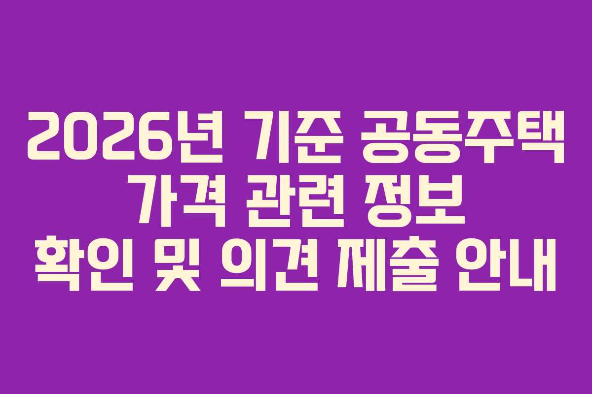 2026년 기준 공동주택 가격 열람은 2026년 3월 18일부터 4월 6일까지 진행된다. 이 기간 동안 소유자 및 이해관계인은 해당 가격에 대해 의견을 개진할 수 있는 기회를 가지게 된다. 이 과정은 토지 소유자와 관련된 이해관계자들이 자신의 입장을 표현하고, 필요한 경우 수정 요청을 할 수 있도록 설계되었다.