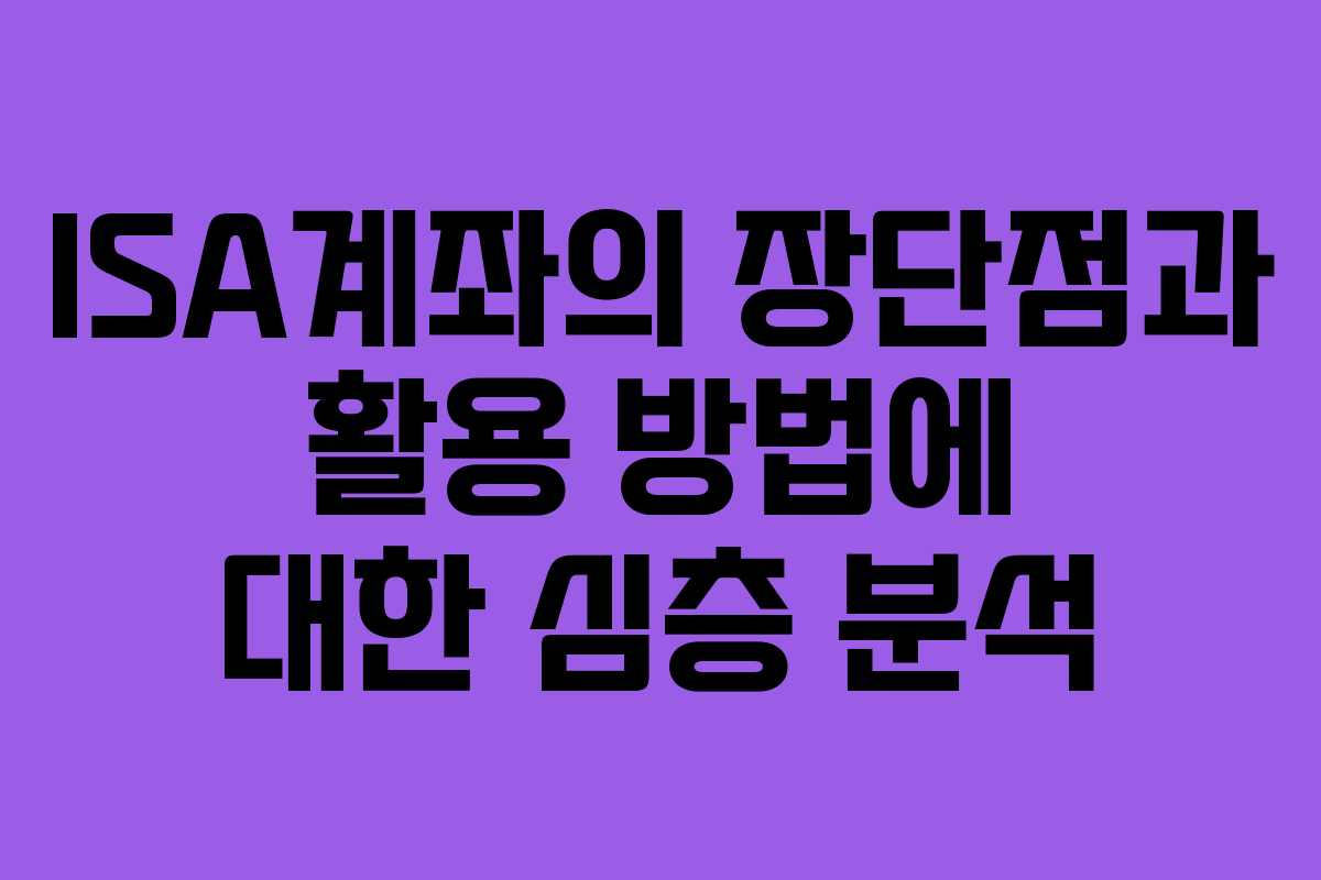 ISA계좌의 장단점과 활용 방법에 대한 심층 분석